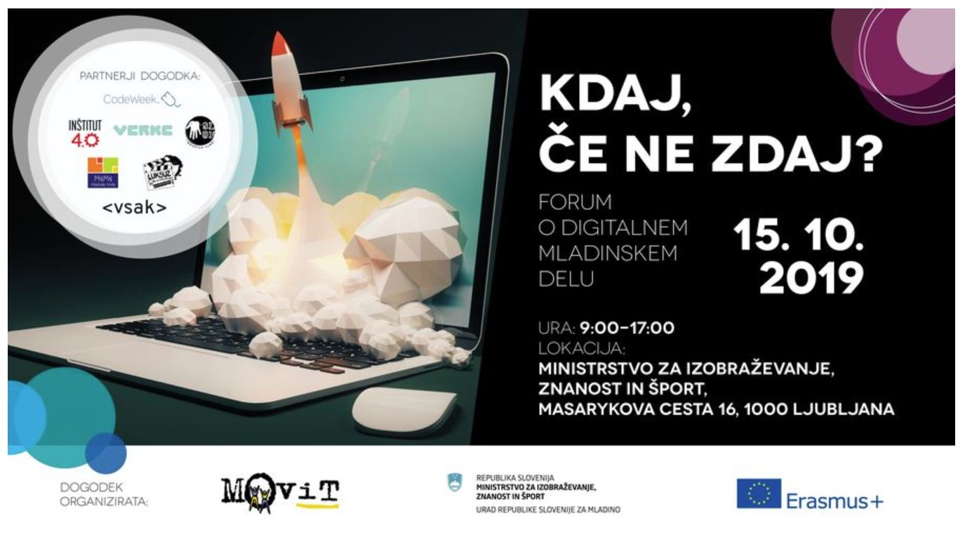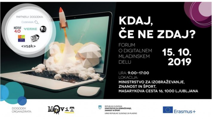 Na vsa ta in še mnoga druga vprašanja boste lahko skupaj iskali odgovore na forumu o mladinskem delu "Kdaj, če ne zdaj?", ki ga 15. 10. 2019 med 9.00 in 17.00 uro organizirata Movit in Urad RS za mladino.