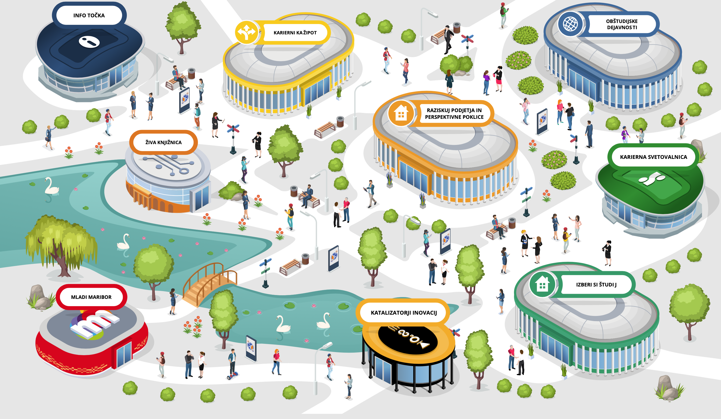 V kar dveh dvoranah najdete tudi stojnice MKC Maribor, ki skrbi tudi za 2 virtualni dvorani - Živo knjižnico, kjer se predstavljajo najrazličnejši poklici in strokovni profili, ter dvorano platforme konS. Na njihovi stojnici vas pričakuje virtualni sprehod, posveti v živo, predstavitve zanimivih vsebin, anketa za mlade in tudi nagradna igra, s katero lahko osvojite mamljive nagrade!
