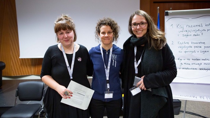 Kot primera dobre prakse sta bila predstavljena finski in irski model strukturno urejenega pristopa vključujočnosti in vključujočih organizacij. Prav tako je bil predstavljen tudi osnutek enega od orodij za samoevalvacijo delovanja organizacij za področju vključevanja in nediskriminacije, ki ga Društvo Parada ponosa, skupaj s parnerskima organizacijama iz Finske, The Peace Education Institute (RKI) in Irske, National Youth Council of Ireland (NYCI), razvija v okviru projekta Transformacija sovražnega govora v mladinskem okolju (program Erasmus+ Mladi v Akciji).