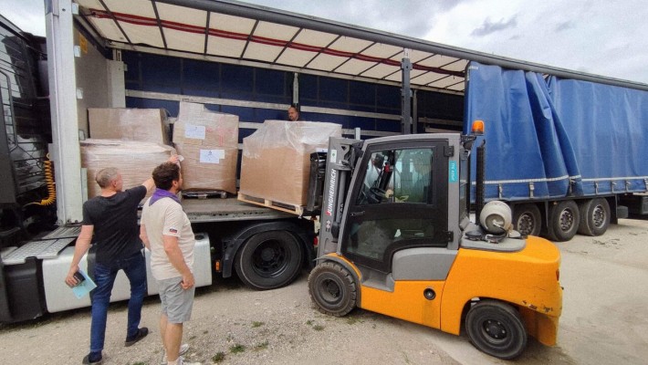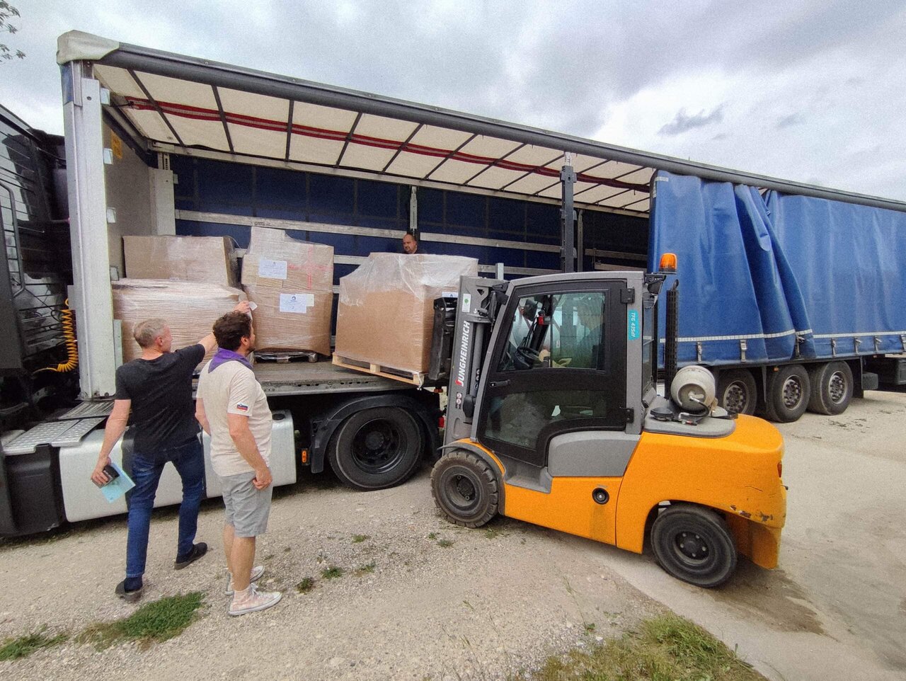 Ukrajinskim tabornikom so v sredini maja poslali okoli 1.500 kg humanitarnih materialnih dobrin. Transport za 7 palet materiala je krilo podjetje Hella Saturnus Slovenija, skladiščenje in zbiranje dobrin pa nam je bilo omogočeno v prostorih Uprave republike Slovenije za zaščito in reševanje.