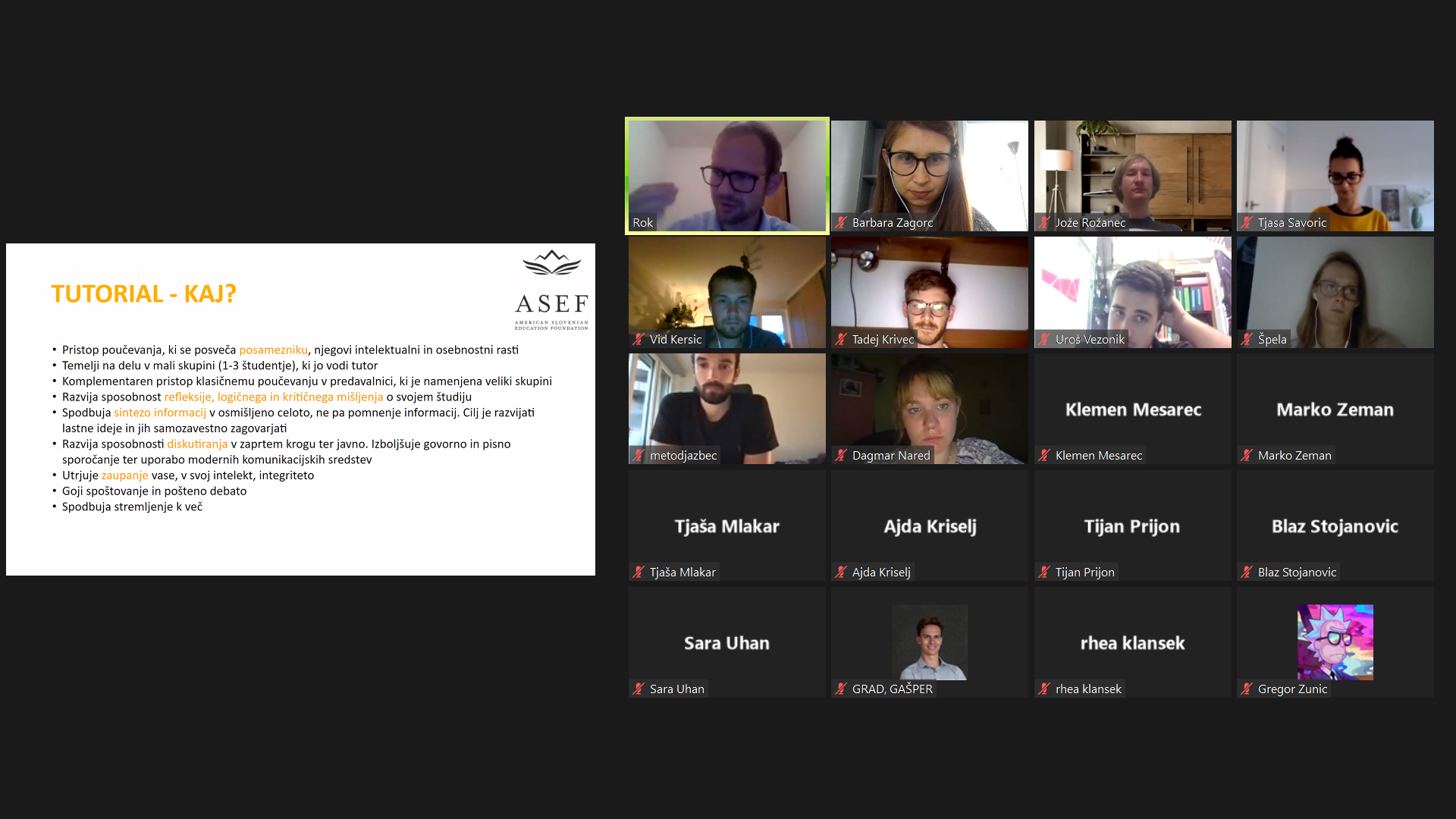 Program in smernice za novo študijsko leto je na dogodku predstavil vodja programa ASEF tutorstvo dr. Rok Sekirnik. Na srečanju sta se mu pridružila še Vesna van Midden, štipendistka generacije 2020, in Jože Rožanec, štipendist generacije 2016, ki sta predstavila svojo izkušnjo sodelovanja v programu prejšnje leto.